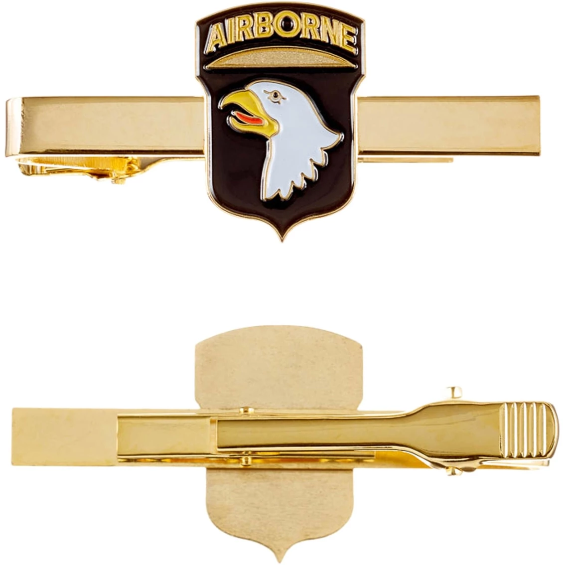 The 101st Airborne Division logo is featured on this tie bar. With its iconic eagle on brown background, this elegant tie bar is the perfect accessory for your suit and helps show your pride. Style: CC 1012.
