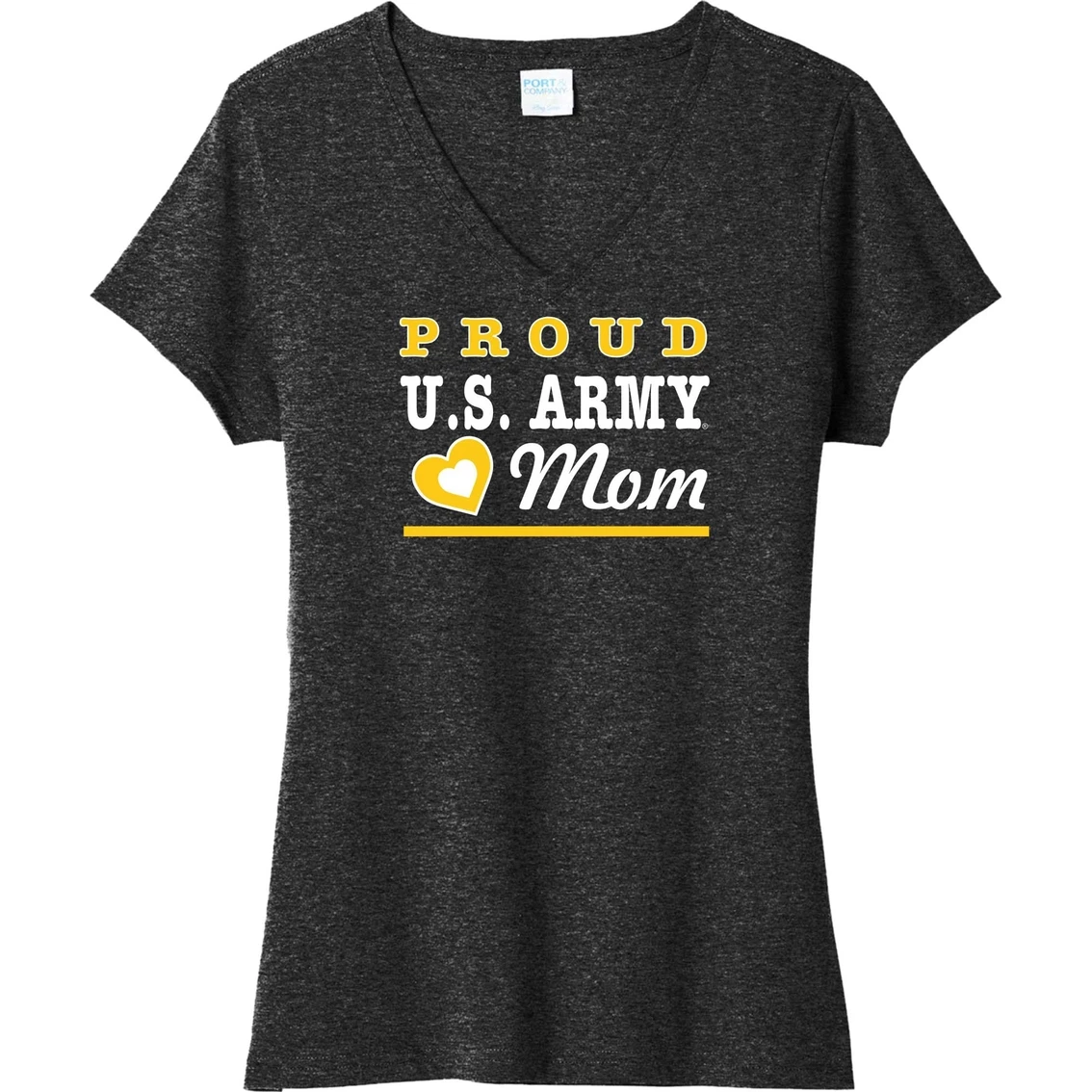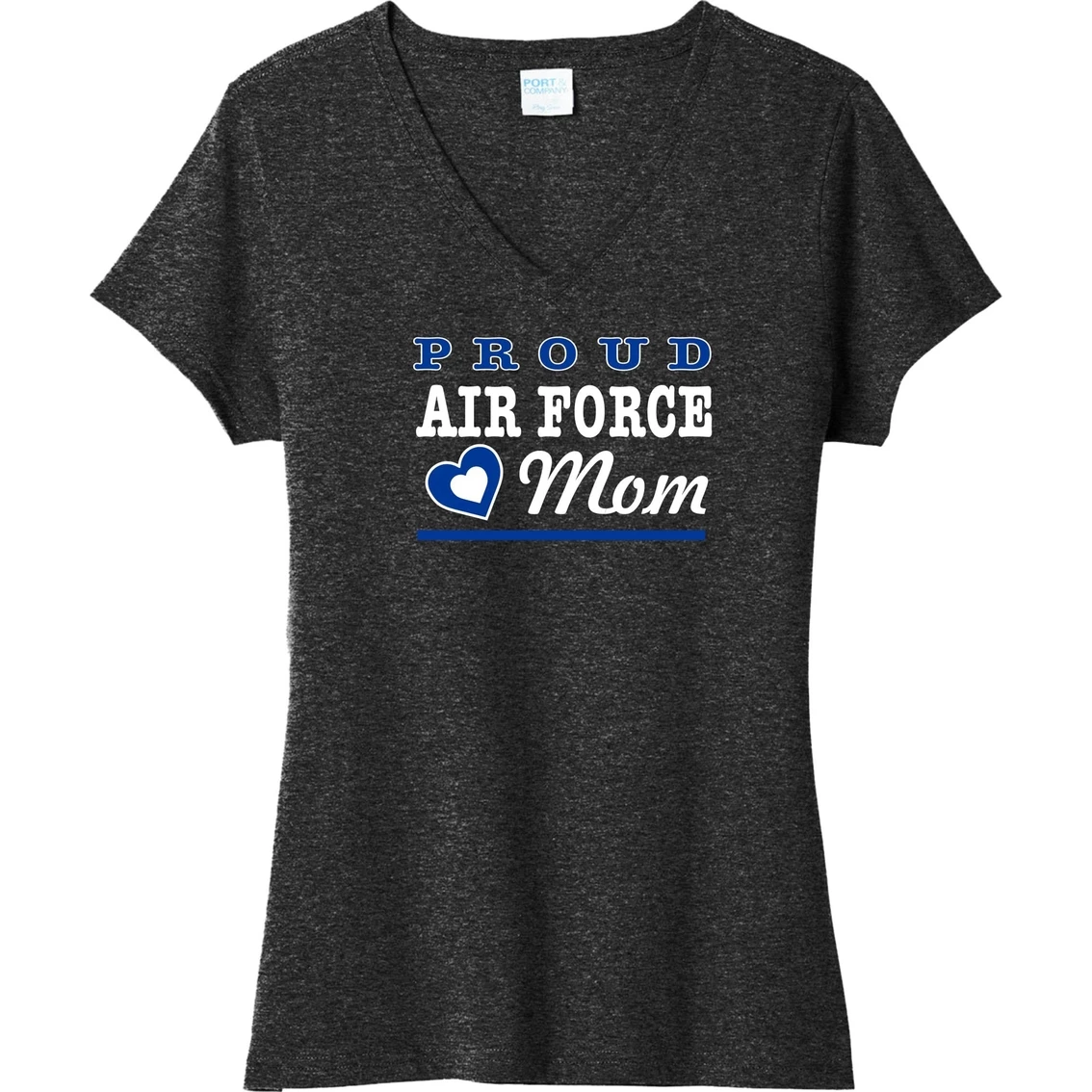 Moms can show their Army or Air Force pride with this black heather V-neck tee from Life Signs. This design is printed on a women’s pre-shrunk soft touch tri-blend shirt which features short sleeves and a rib neck collar with shoulder-to-shoulder taping. The shirt says “Proud U.S. Army Mom” or “Proud Air Force Mom” and has a heart graphic for an extra sweet touch. Style: LAA003.