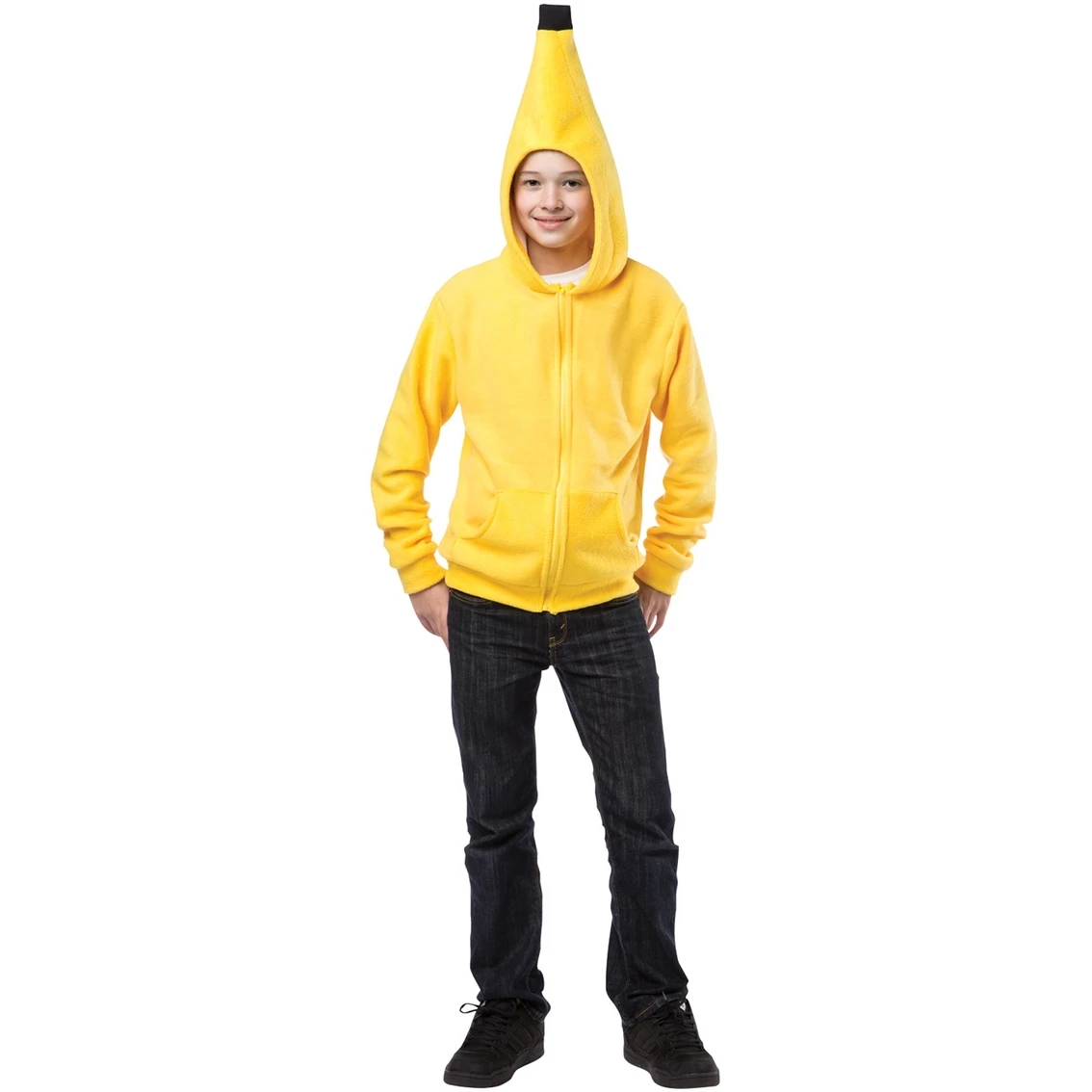 | Includes | Bright yellow front-zip hoodie has a pointed banana-shaped hood! |
