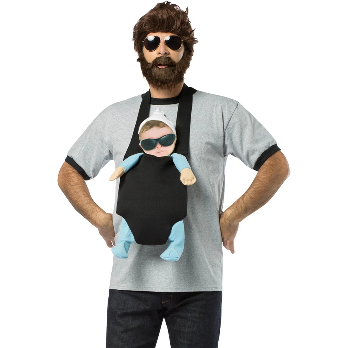 | Includes | Wig, beard, aviator sunglasses,baby carrier, baby |