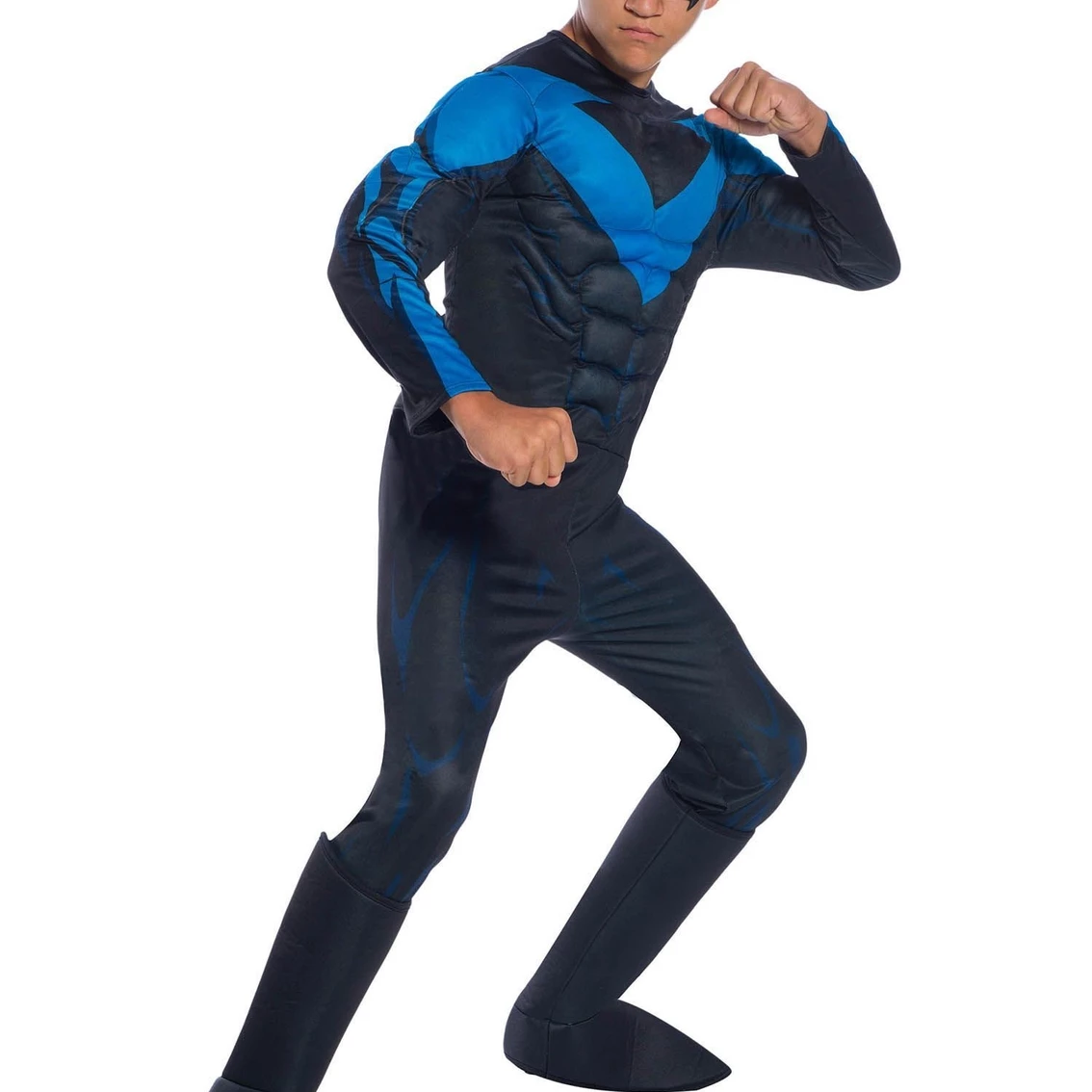 If your little one wants to travel through the night battling the bad guys as Nightwing you can give them what they want. The licensed Deluxe Nightwing DC Comics Kid’s Costumecomes with all he needs to prepare for the next battle against The Riddler or any other villains that come their way. The costume includes a muscle chest padded jumpsuit featuring the blue emblem of the Nightwing. Black boot tops are attached for an easy change when the time calls. A molded mask finishes the true disguise as your kiddo becomes the Nightwing.