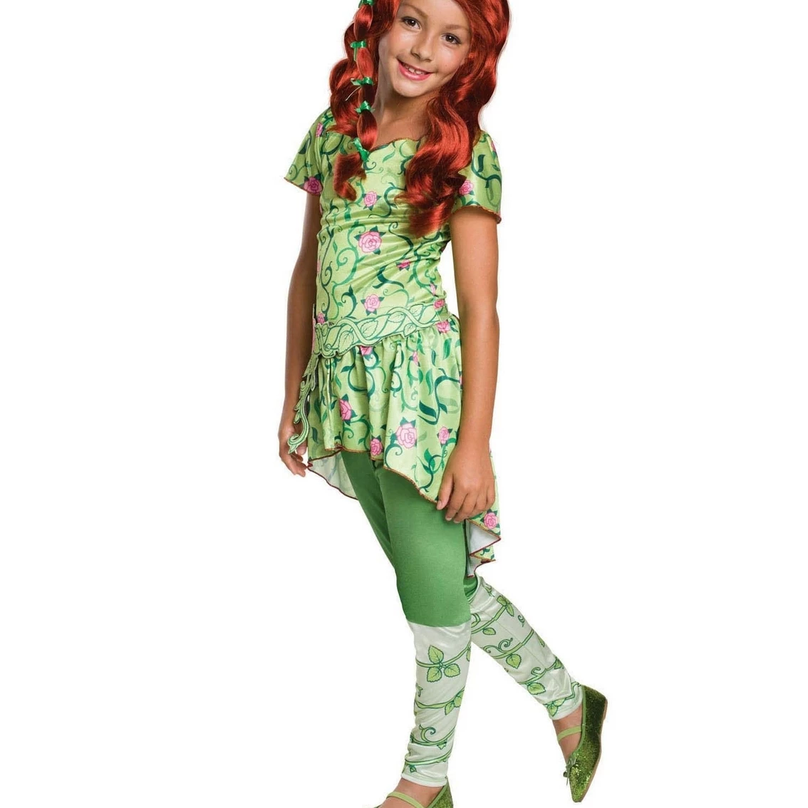 Serve up some sass and be a thorn in Batman’s side when your little villain wears the cute Poison Ivy Kids Costume. It features a printed rose and thorny vine design dress with a hi-low drop waist skirt. Green leggings end in a printed vine design mimicking Poison Ivy’s control of deadly plants. A pretty printed vine belt featuring a large rose is the final piece to this super villain outfit. Add some red locks and green shoes to complete this DC Super Hero Girls look.