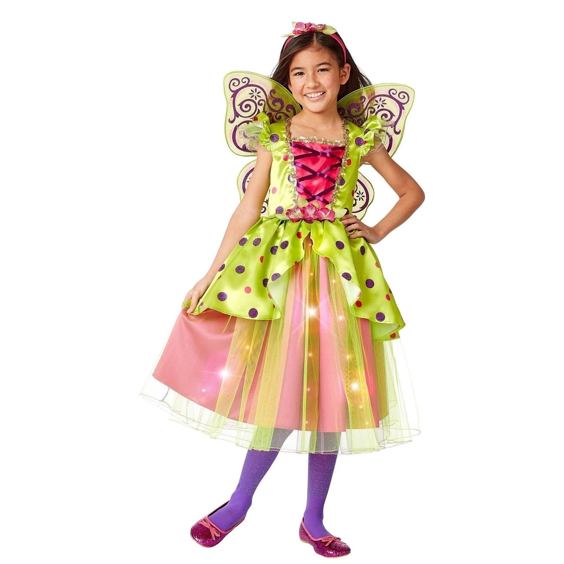 Your daughter will be sprinkling pixie dust and magic wherever she goes this Halloween when you dress her up with our Child Limelight Fairy Costume. With your purchase, you will receive everything you need to transform your daughter into the most enchanting pixie to ever flutter her wings. Featuring a stunning light up dress, a pair of beautiful wings, and a matching headband, she is going to love this one. Buy your fairy costume today!