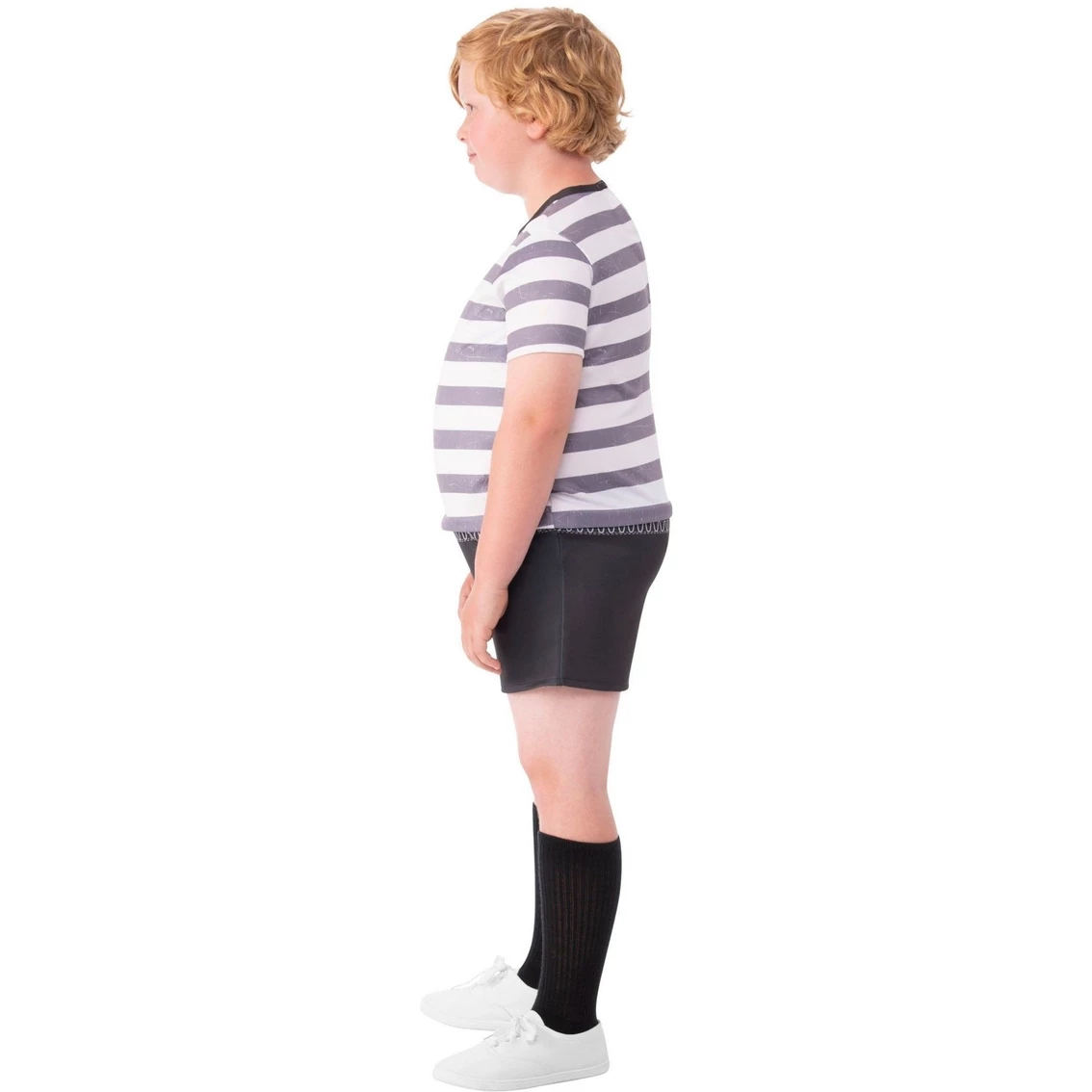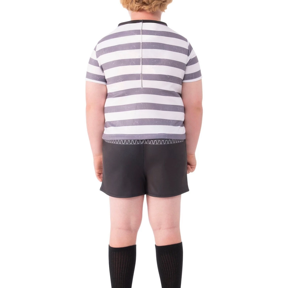 Your kid will make a perfect Pugsley this Halloween when you dress them up in our Child Pugsley Addams Costume! With your purchase, you will receive everything you need to turn your tyke into everybody’s favorite Addams child. Featuring a romper with a stuffed belly and a pair of socks, your child is going to fit right in with the Addams Family while wearing this classic attire. Buy your costume today, and go make this Halloween a day of trick or treating you’ll never forget!