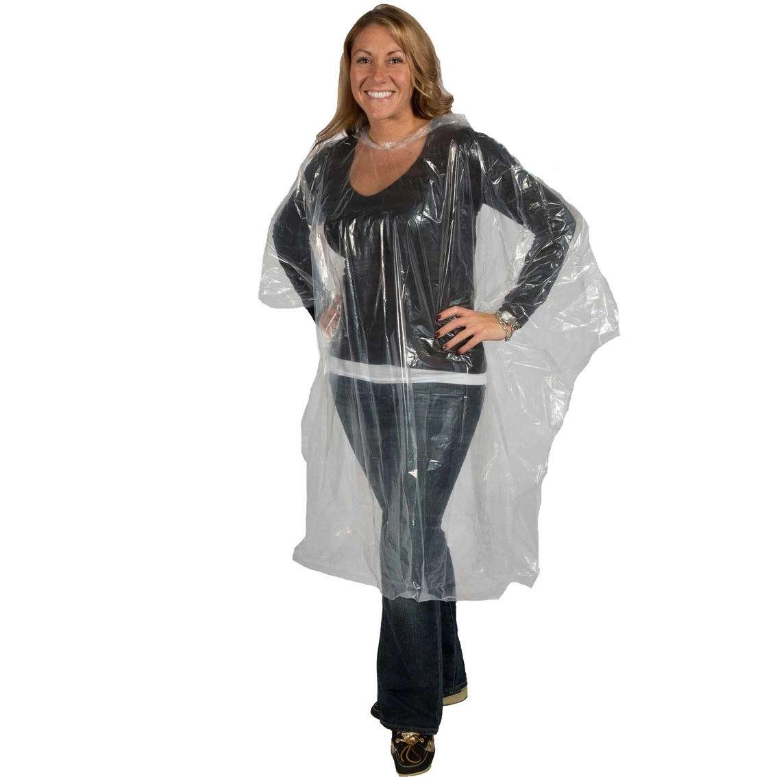 You’ll never get caught in a downpour with this Lightweight Plastic Poncho from Storm Duds. Keep one handy in your backpack, briefcase, glove box or purse. This convenient rain cover comes in three colors: Clear, Blue and Yellow. Model: 1200.